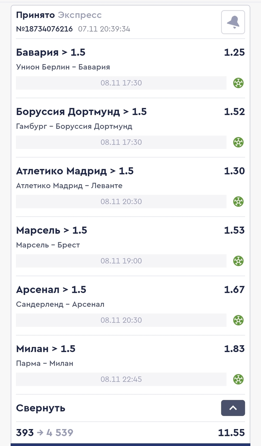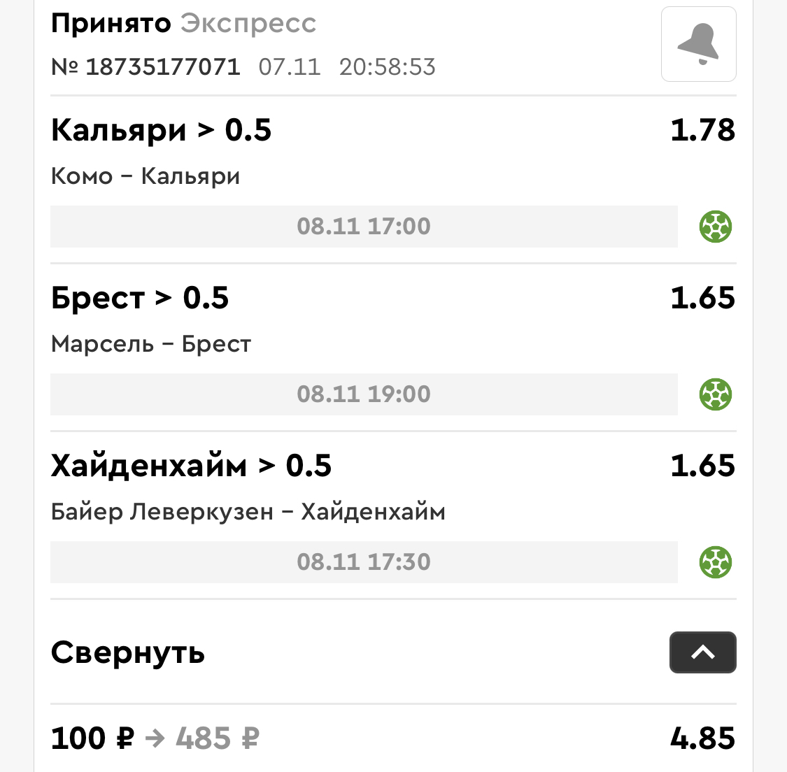 Доброго времени года Виталию, его команде и зрителям этого канала! Хочу поделиться экспрессом на футбол 08.11.25.