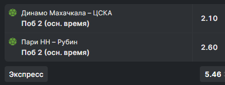 2) Пари НН - Рубин. Хотя и у Рубина серия из трёх матчей без побед в чемпионате, идущий на последнем месте Пари НН побеждать необходимо и прервать небольшую серию неудач. П2 Рубин