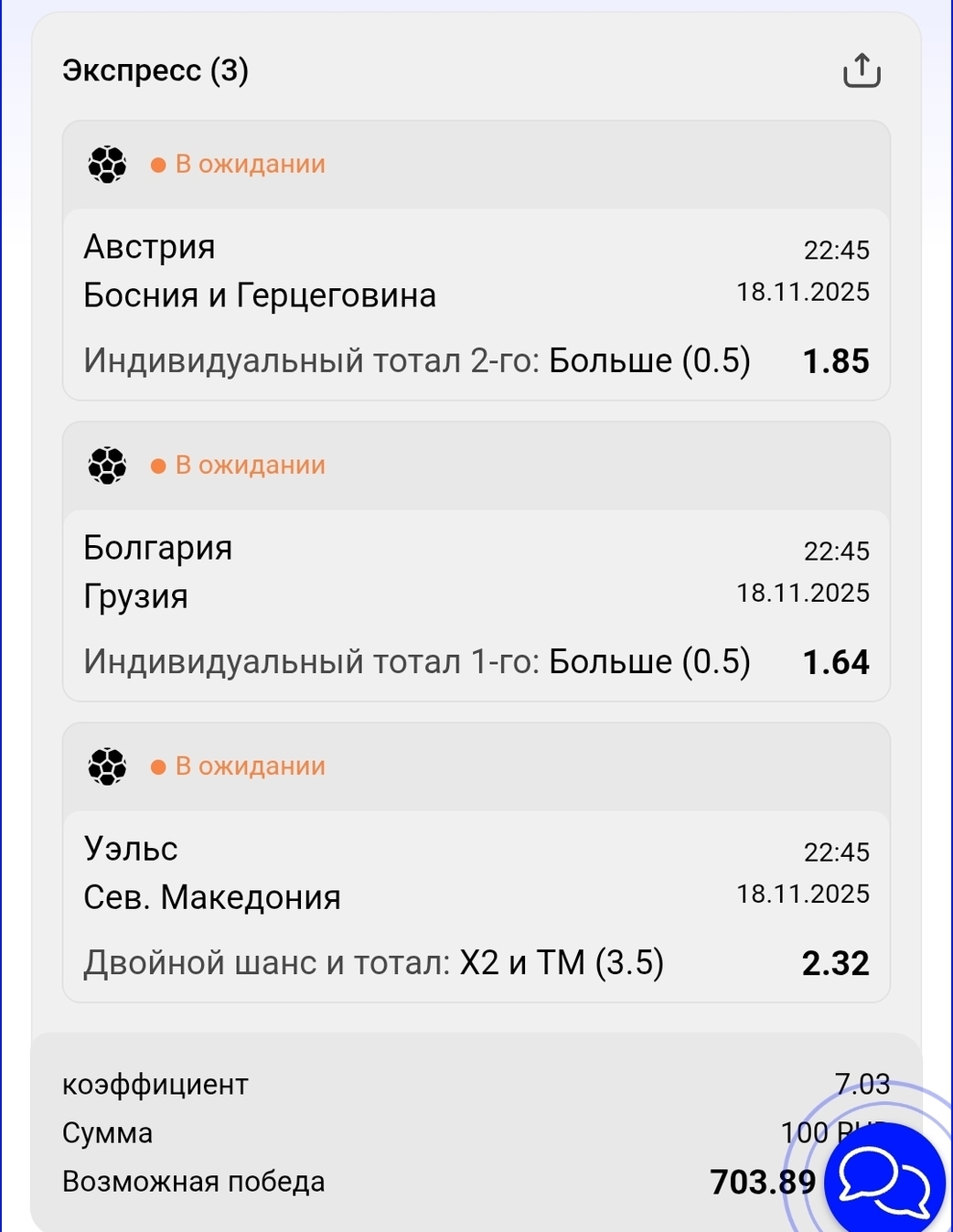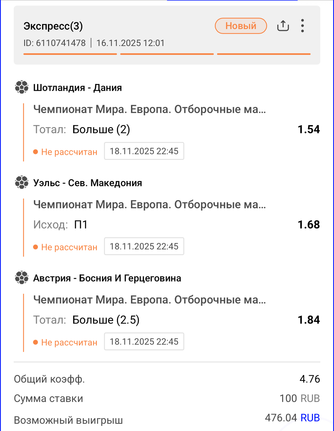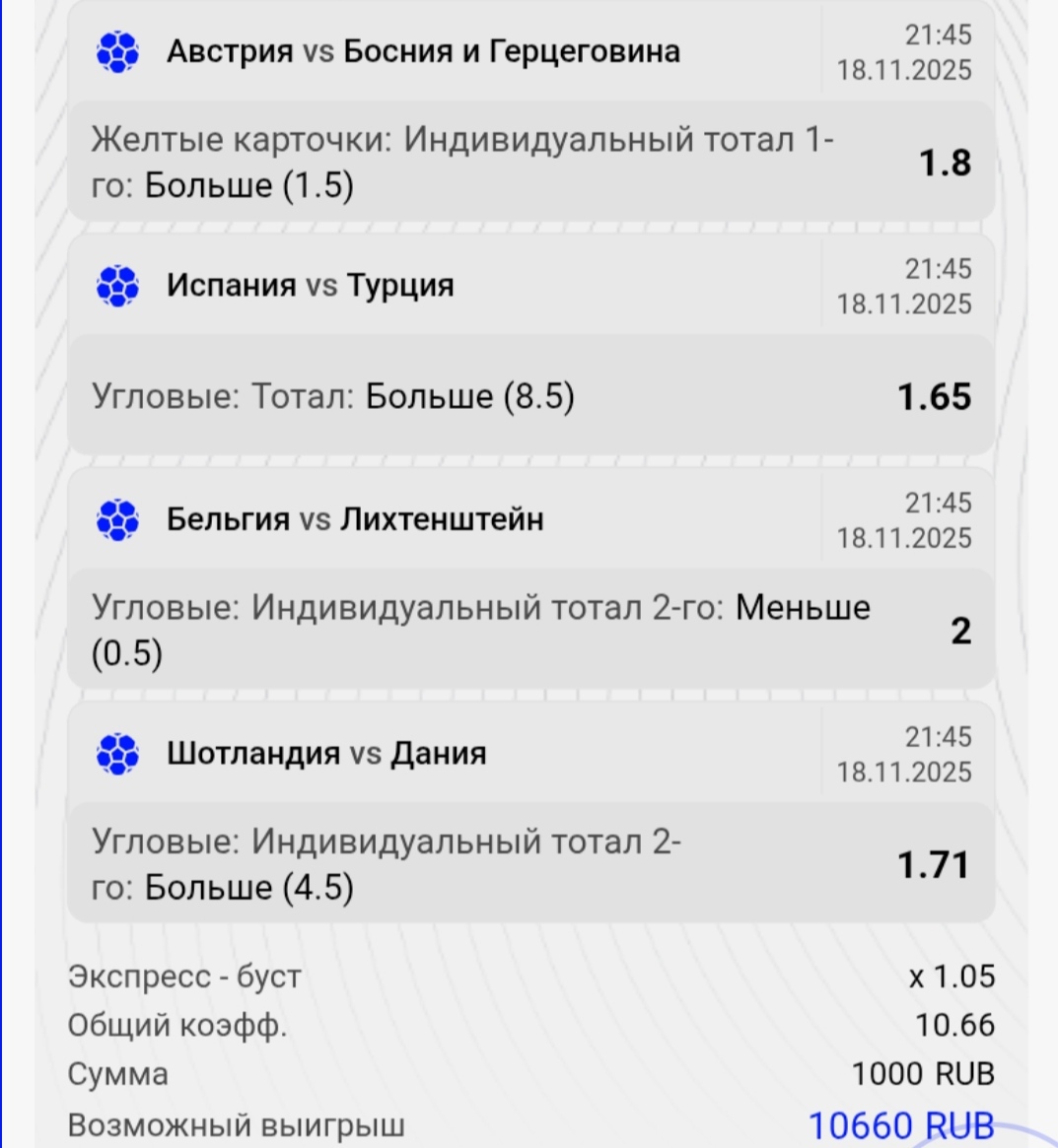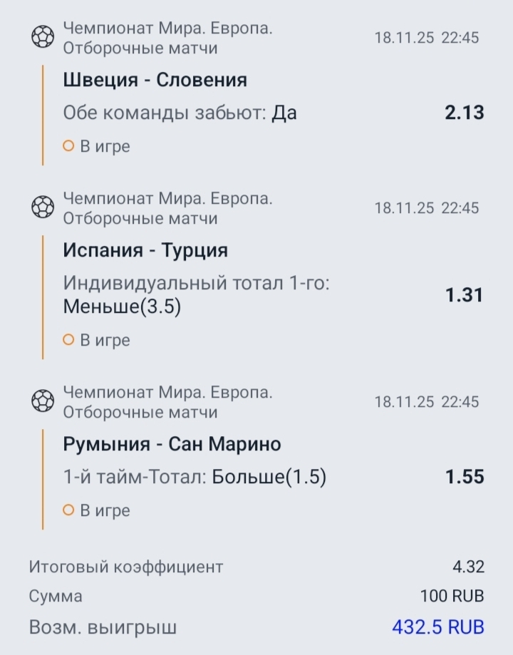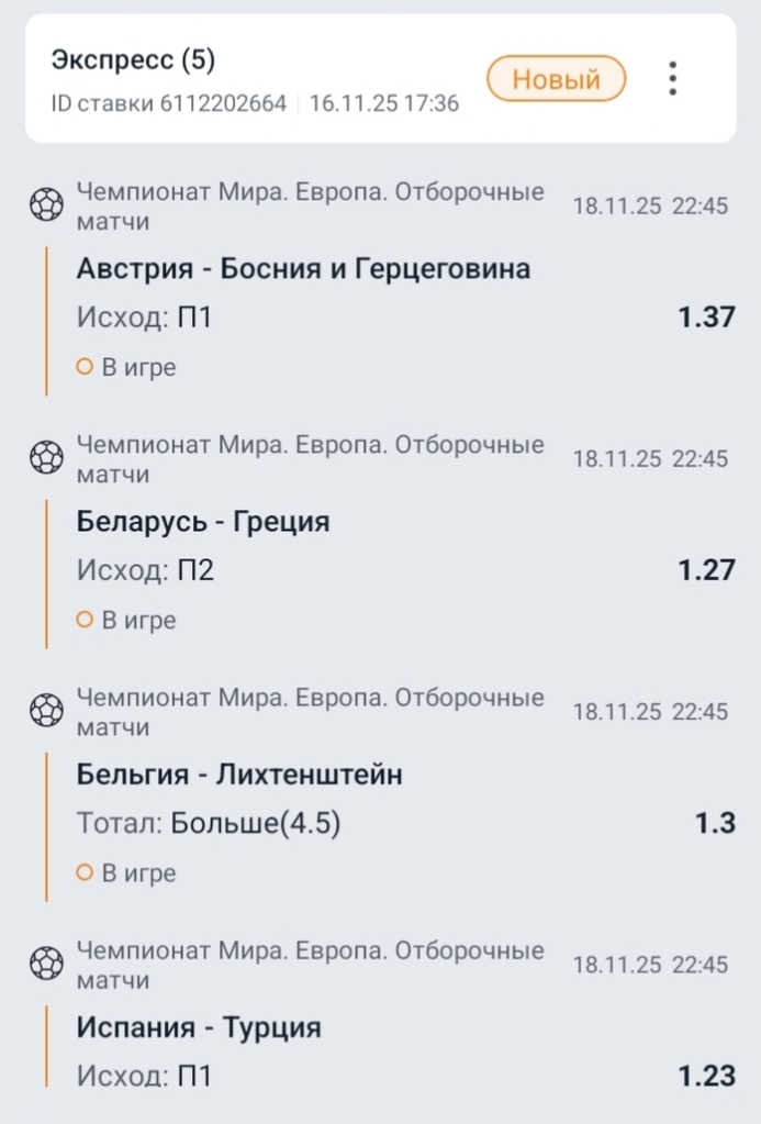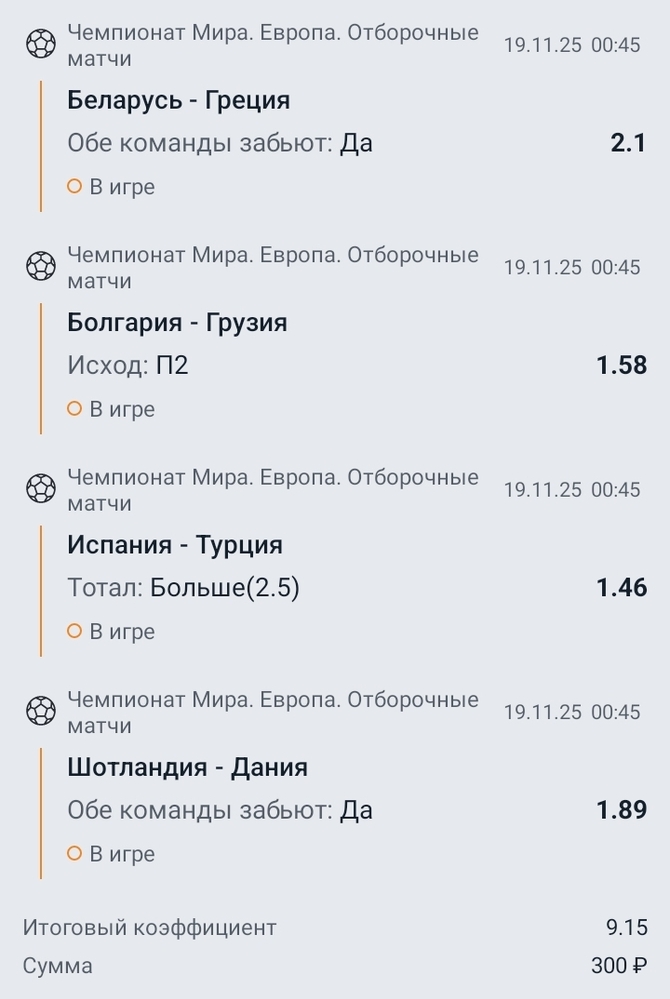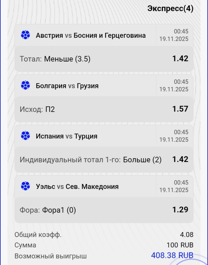 Всем привет.Меня зовут Владислав Мардарь и я хочу поделится своим экспрессом на отборочные матчи ЧМ 2026